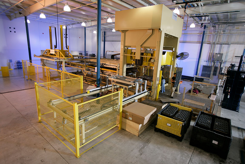 A press solution with shuttle and robot to manage honeycomb material and PU spray